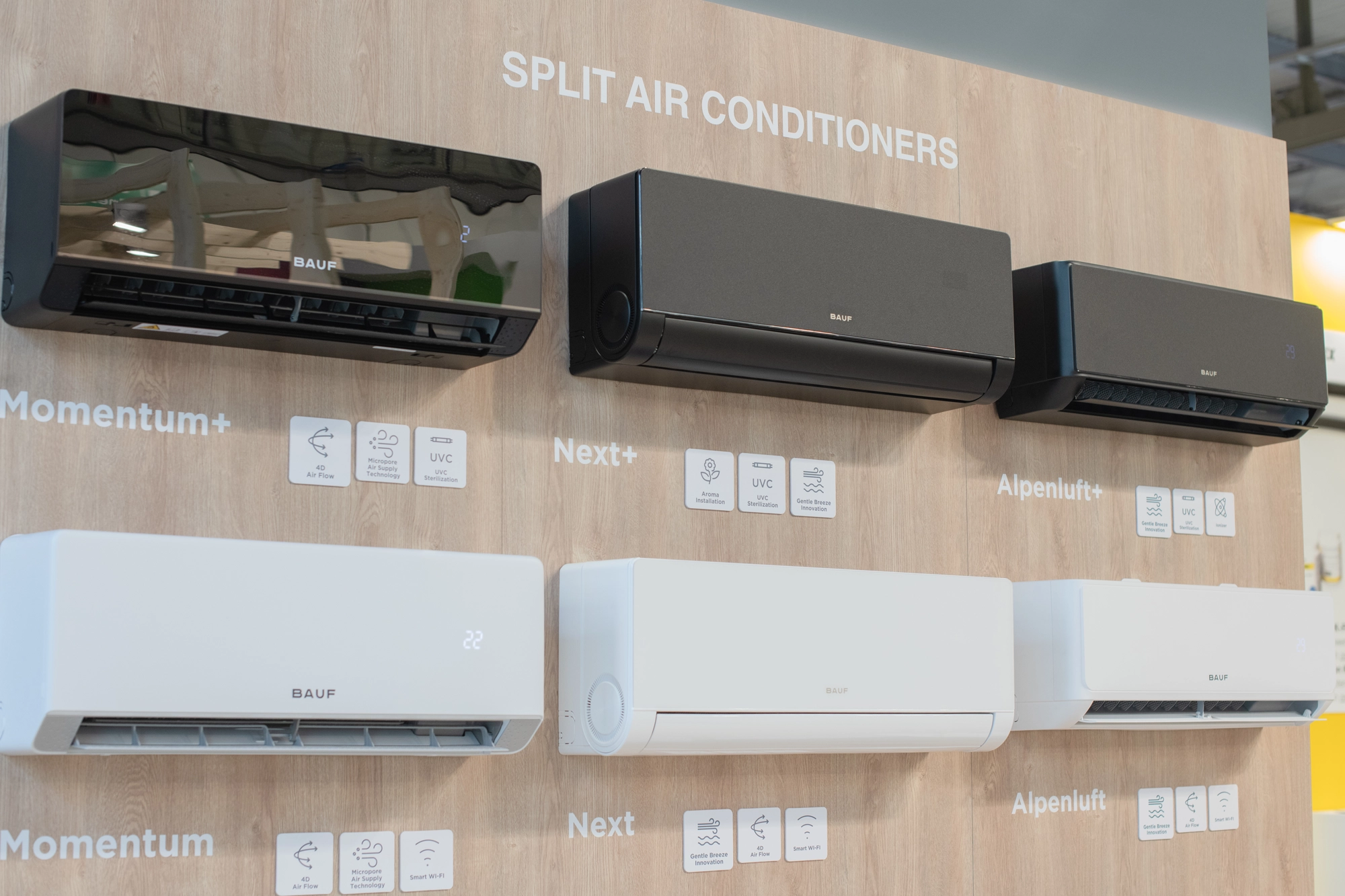 At the stand, BAUF presented its complete range of residential and light-commercial climate systems, including the Alpenluft Inverter split series with Gentle Wind airflow technology, integrated UV sterilisation and ionisation modules, advanced multi-zone solutions, and energy-efficient heat pumps built for European conditions. Product demonstrations ran continuously, and the team fielded detailed technical questions from seasoned professionals who were impressed by the engineering, design language, and energy performance of BAUF's lineup.